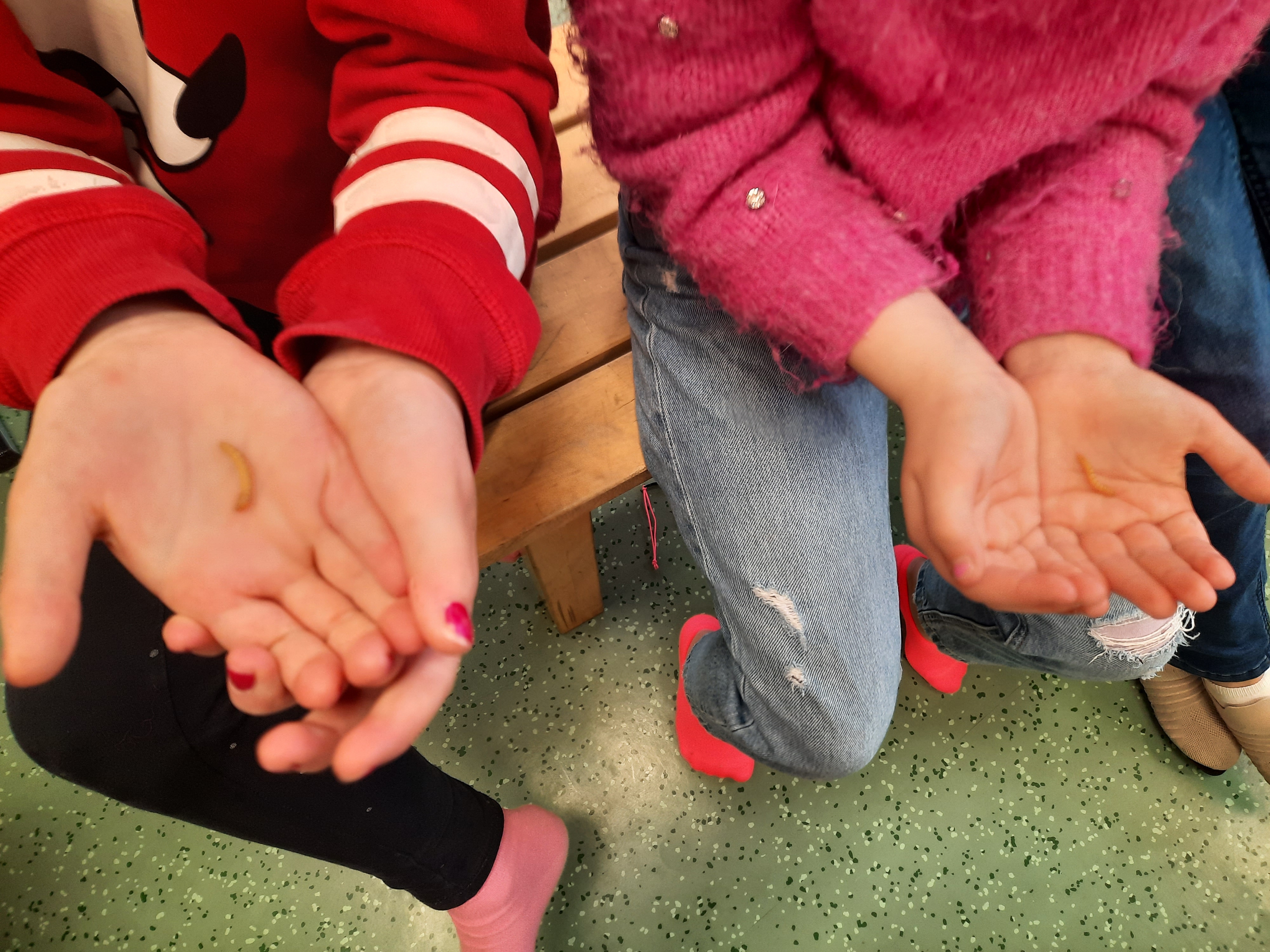 Wir durften was auf die Hand nehmen was gekitzelt hat. Die Mehlwürmer.
