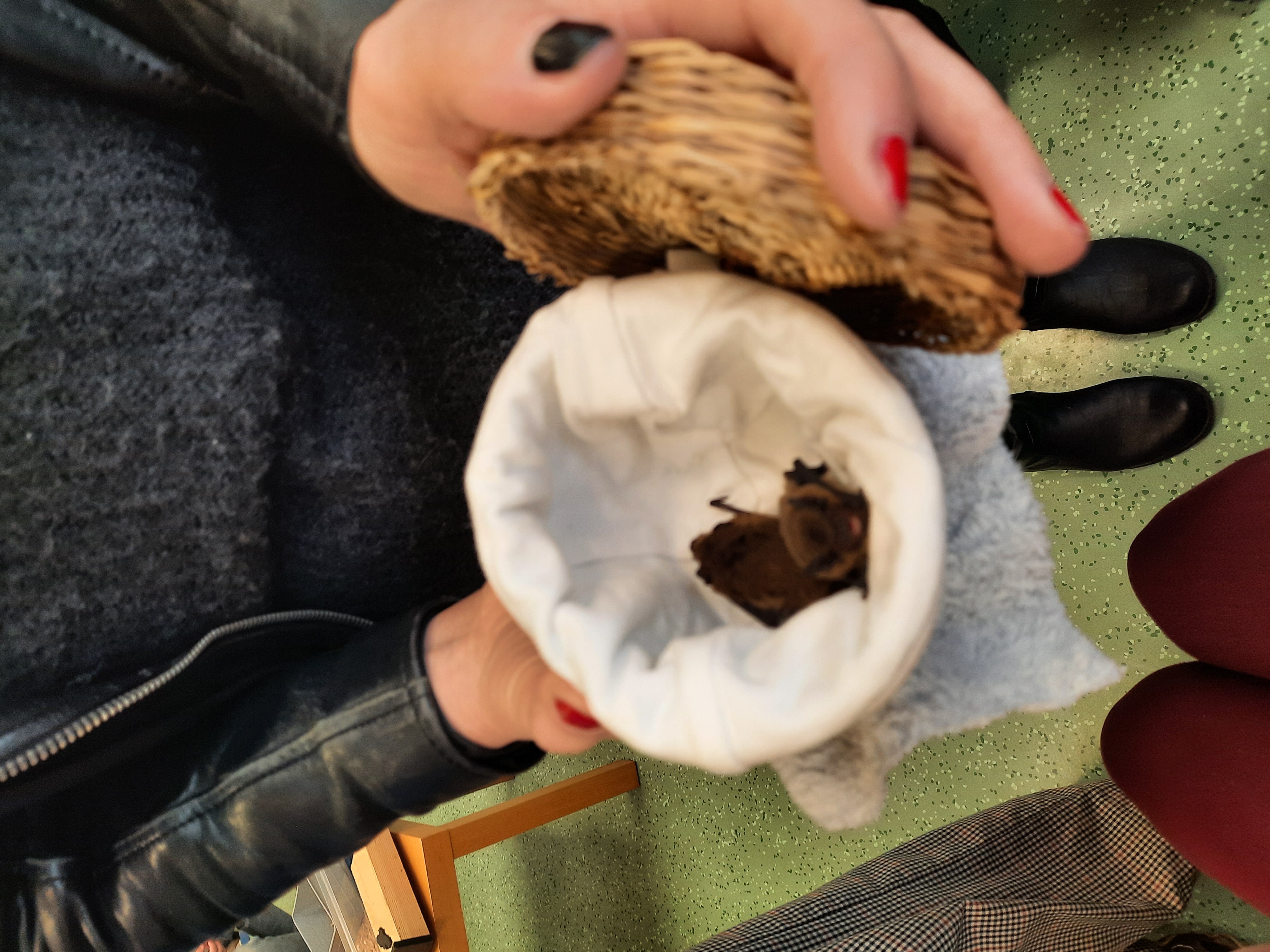 Wir haben Mehlwürmer (das ist Futter von den Fledermäusen) auf die Hand gekriegt.