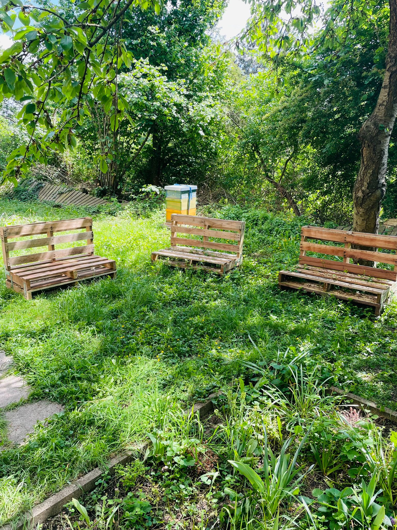 Aus den restlichen Paletten wurden (ebenfalls von der Bau-AG) tolle Sitzmöglichkeiten hergestellt.