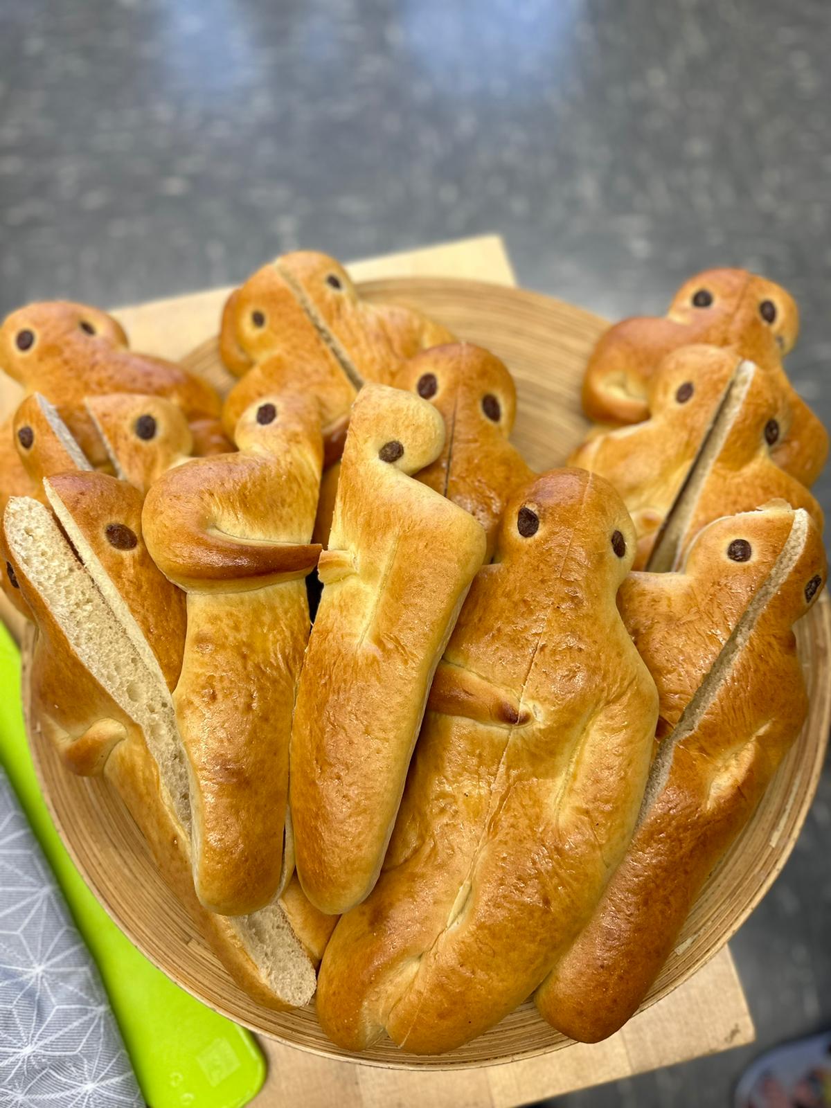 In der Schule haben wir Weckmänner geteilt. Am Abend haben wir uns beim Schützenheim mit den Laternen getroffen. Als wir am Ziel angekommen sind haben wir uns aufgestellt und das Feuer betrachtet.