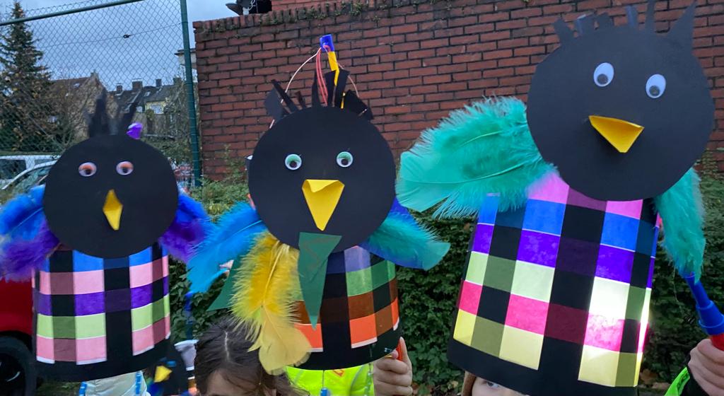 Letztens war Sankt Martin. Wir sind in einem Sankt-Martins-Zug von der Schule mitgegangen - mit der ganzen Schule Klasse 1-4. Die Laternen haben soooo schön geleuchtet. Ich fand meine Laterne sah richtig schön aus. Und die anderen Laternen auch. Wir hatten Kartoffelkönige. Es gab auch Stocklaternen und Raben aber auch Fledermäuse. Es war einfach schön. Am Ende gab es Kinderpunsch und Weckmänner. Danach sind wir noch von Haus zu Haus gegangen.