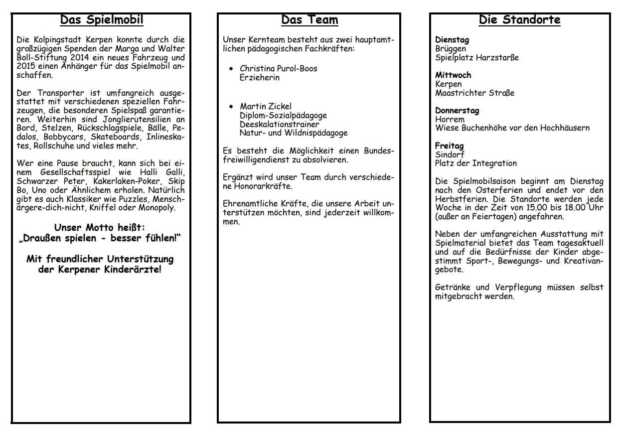 Aber auch darüber hinaus haben die Kinder die Möglichkeit die Angebote zu nutzen. Informationen finden Sie bei der Stadt Kerpen