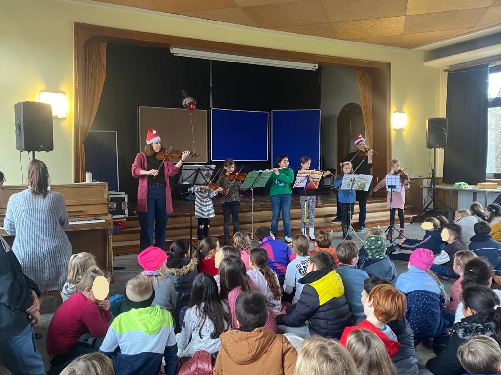 Neben den gemeinsamen Liedern haben einige Kinder auch ihr musikalisches Können an Instrumenten gezeigt. Caroline, Sanna, Merle, Ellen und Emma haben uns mit Ihren Geigenkünsten erfreut, Katharina spielte wunderbar Querflöte und Leo hat toll am Klavier gespielt. Danke an euch für diese Darbietungen, für die sicherlich viel geübt wurde und die vor einem großen Publikum einigen Mut erforderten.